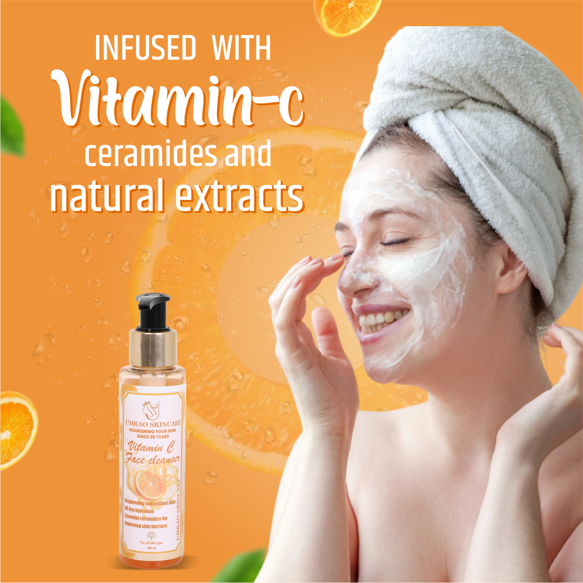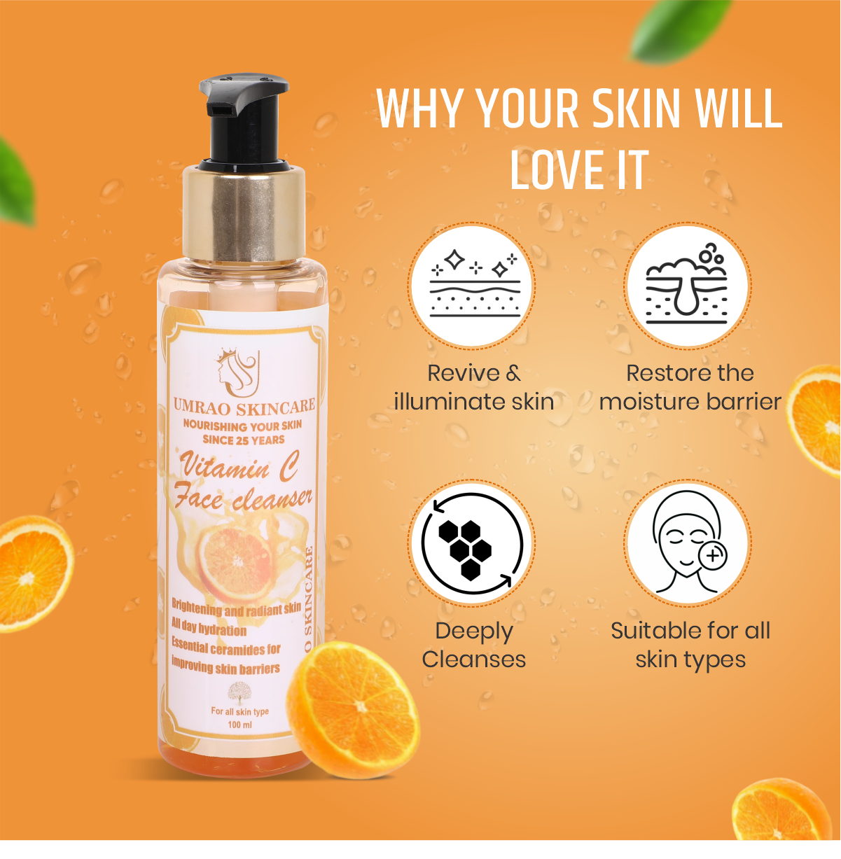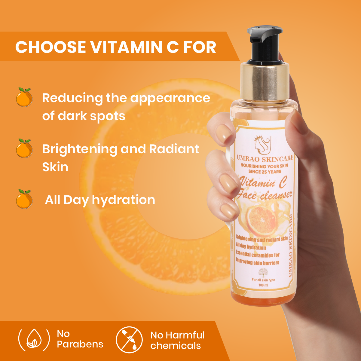 Experience the refreshing power of Umrao Skincare Vitamin C Face Cleanser, designed to gently cleanse, brighten, and hydrate your skin. Infused with Vitamin C, ceramides, and natural extracts, it helps improve skin texture, restore the moisture barrier, and reveal a radiant glow.